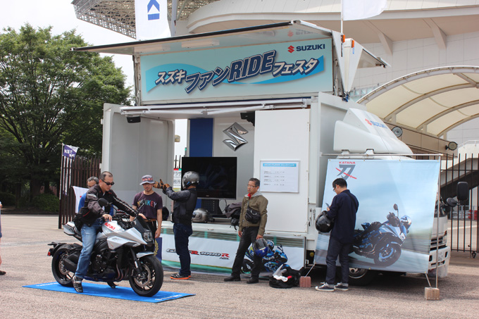 スズキのニューモデルを集めた大型試乗会「スズキ ファンRIDEフェスタ2019」が6月から日本全国各地で開催されている。今年の目玉は何といっても、5月30日に販売開始となった新型KATANA(カタナ)が試乗車にラインナップされていること。今回、6月13日(土)・14日(日)の2日間、埼玉スタジアム2002の敷地内で開催された関東エリアの「ファンRIDEフェスタ2019」の内、13日に取材に伺ったが、当日はKATANAの試乗車が8台用意されたにも関わらず、午前・午後ともにすぐに試乗枠が埋まってしまうほどの人気だった。