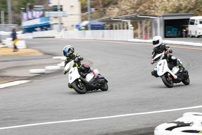120分耐久はショップ対抗に比べ、台数も多く、ペースもアップ。コーナーでは各ライダーがしのぎを削ります。