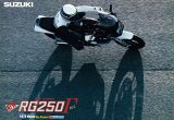RG250デビュー当時は、各社こぞって4スト路線を邁進中。中型クラスはパンチのある機種がなく、2ストのRG250の軽量でシャープな走りは刺激的だった。このカタログの表紙では世界GPで4年連続メーカータイトルを獲得し、チャンピオンマシンRGB500の血潮を受け継ぐ……と力説。当時のWGPが押し掛けスタートだったことも思い出す