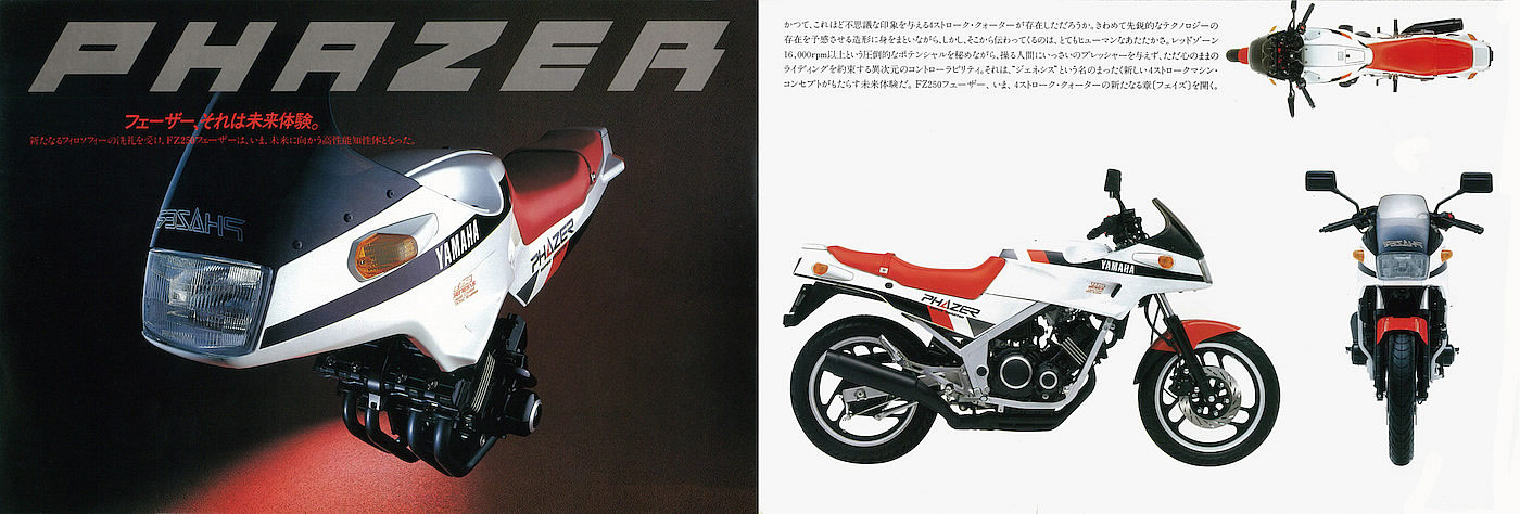1985年春。ヤマハからFZ250フェーザーが発表された。ピークパワーは当時の2スト250cc並みの45ps。しかも発生回転数はその倍近い1万4,500rpm。1万7,000rpmまで回るとある。「’60年代のホンダ4ストGPマシンならまだしも、1万5,000回転以上回る公道走行車が出るのか!」と大きなインパクトを受けた。