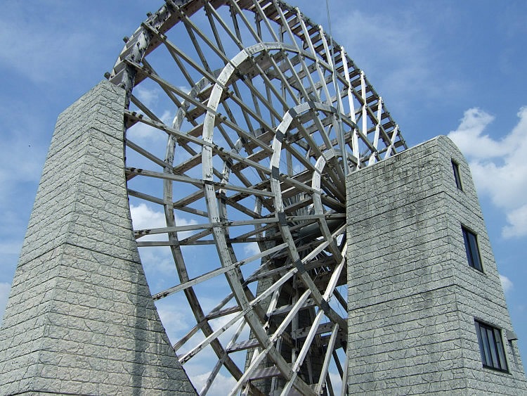 自然豊かな県道33号線を走っていると、遠くからでも目に入ってくる木製の大きな水車が「おばあちゃん市山岡」のシンボルマークです。この直径24mの木製水車は日本一の大きさを誇っているそうです。この大型水車は、隣接する小里川ダムを整備した際に水没した地域で水車が使われていたことに由来するものだそうで、水没前には陶磁器を作るための陶石用の砕石製造に、多くの水車がこの周囲にあったようです。