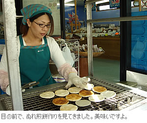 次は銚子のお土産をGETしに行きましょう! 今回は銚子電鉄仲ノ町駅そば、県道37号線沿いの「ぬれ煎餅のイシガミ 新生店」へお邪魔しました。さて、みなさんは銚子名物「ぬれ煎餅」というものをご存知でしょうか? 最近、雑誌やテレビで、紹介されじわじわと知名度が上がってきています。お煎餅といえば、一般的には硬いものを想像すると思います。しかし、このぬれ煎餅は名前の通り少し濡れていて軟らかいのです。もともと硬い煎餅が湿気たものは美味しいはずはありませんが、逆転の発想とでも言うのでしょう。湿気た状態で食べることを想定して作られたこの煎餅は、とてもおいしく独特の食感が癖になります。こちらのイシガミさんではインターネットで地方発送もしていただけるので、興味のある方はぜひ利用してみてください。ここで素朴な疑問がひとつ。「ぬれ煎餅は、なぜ銚子名物なの?」その答えは意外と単純でした。古くから銚子は醤油の町として知られているように、大きな老舗メーカーが2社もあります。ぬれ煎餅は普通のパリッとした硬いお煎餅を作るより、多くの醤油を使うことから、醤油の調達が容易な銚子での名物となったようです。