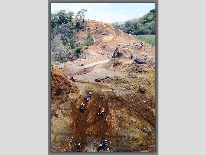 10砂山直後に控える激坂は歩いて登るのも困難な厳しさで、バイクに上手く加重を掛けて何とか上がっていく。